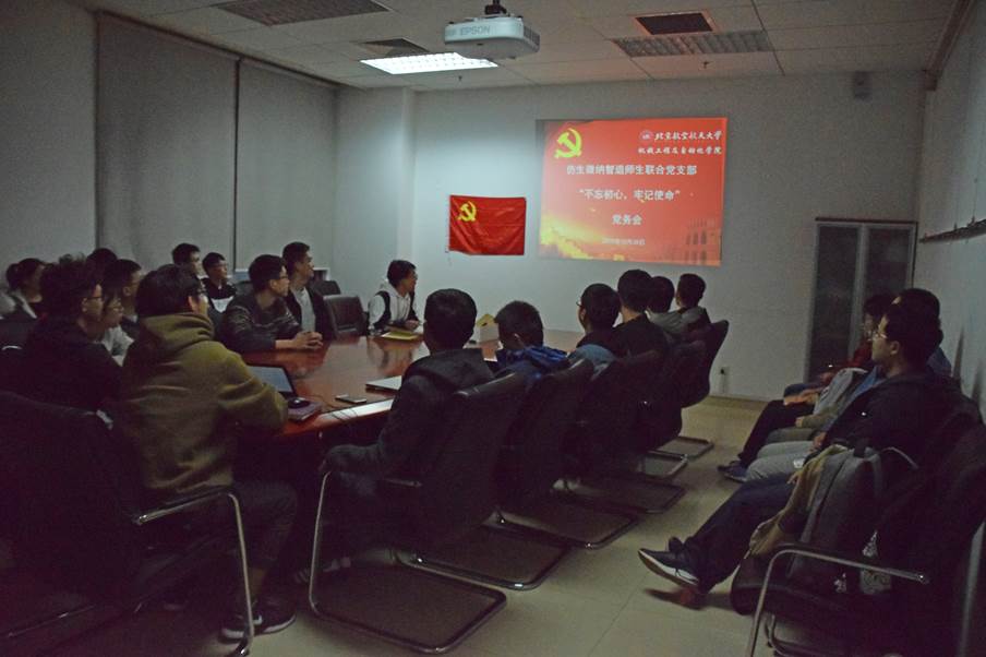 2019年10月28日晚上,仿生微纳智造师生联合党支部召开了党小组会,会议由支部副书记刘春剑支持,党支部支委、积极分子及2019级新生党员参加会议。会议旨在让积极分子和新生党员尽快融入支部,说明支部入党积极分子发展流程、预备党员转正流程、以及支部日常工作部署和安排,并对支部活动进行了详细筹划和安排。